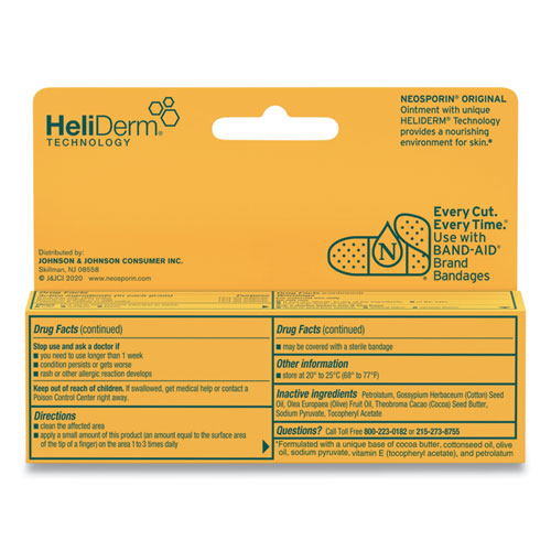 Neosporin Original Antibiotic Ointment provides long-lasting infection protection and minimizes the appearance of scars. Made with Bacitracin Zinc, Neomycin Sulfate, and Polymyxin B Sulfate, this first aid antibiotic ointment helps prevent infection in minor cuts, scrapes, and burns. From the number-one doctor-recommended brand, this antibiotic ointment contains a unique HeliDerm Technology that provides a nourishing environment for skin. To treat minor wounds, simply apply a small amount of the 24-hour infection protection antibiotic ointment and scar minimizer on the affected area one to three times daily.