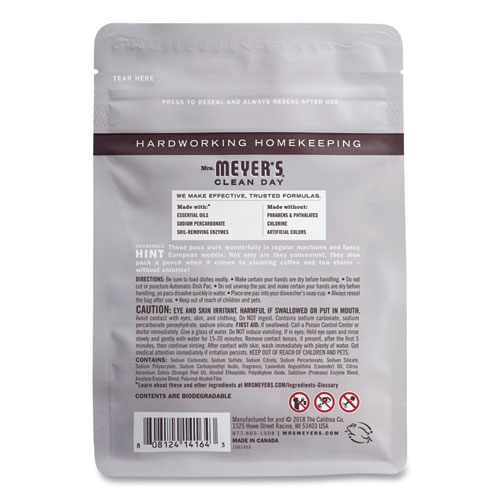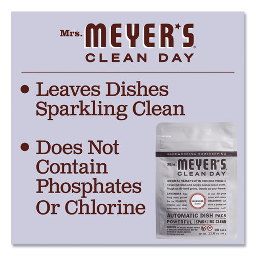 Mrs. Meyer’s Clean Day automatic dish packets help your dishwasher produce sparkling dishes, glasses and flatware. Each pack of oxygen bleach formula loads easily in the dishwasher’s soap cup and is safe for use in all machines. Clean coffee stains from cups without phosphates or chlorine.