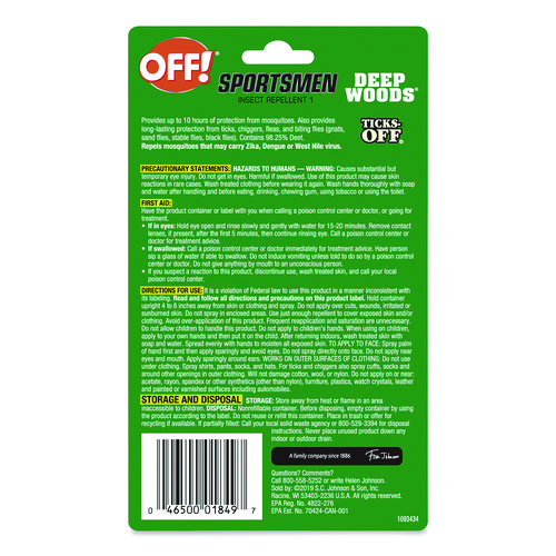 OFF! Sportsmen Deep Woods Repellent Spritz provides strong protection with 98.25% DEET formula. Repels biting insects for up to 10 hours. Non-greasy, odorless formula. Spray repels mosquitoes, ticks, chiggers, fleas, stable flies, black flies, gnats and Sandflies. Pump spray allows for easy application to skin, hair and clothing while keeping hands repellent-free. Small size convenient for keeping in a backpack or pocket.