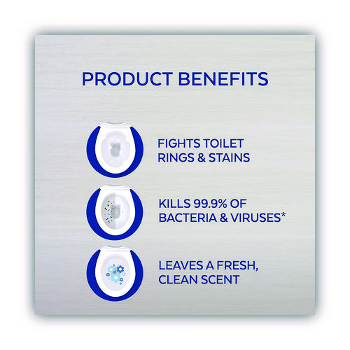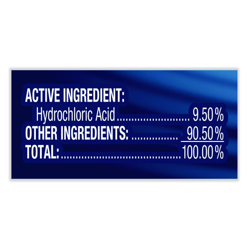 Clean, disinfect, and deodorize urinals and toilet bowls to give guests a clean bathroom experience. Meet staff and customer expectations around cleanliness. Optimize restroom cleaning time with a powerful formula that works on the toughest toilet stains in seconds. Remove hard water deposits with the thick 9.5% hydrochloric acid formula that adheres to stains for better cleaning and coats the bowl above and below the waterline. Kills 99.9% of viruses and bacteria when used as directed. Elevate restroom experiences throughout facilities for customers and staff with a powerful cleaning formula that helps leave surfaces shiny. Will not harm plumbing or septic systems.