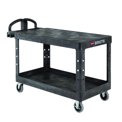Heavy-duty Utility Cart With Flat Shelves, Plastic, 2 Shelves, 500 Lb Capacity, 25.25″ X 54″ X 36″, Black