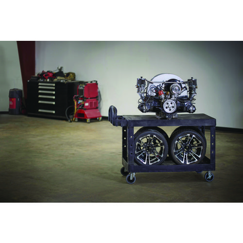 Handy, durable utility cart features rust-, dent-, chip- and peel-proof structural foam construction. Ergonomically designed push handle provides optimum hand placement and push height improving control and worker safety. Molded-in storage compartments, holsters, hooks and notches. Rounded corners and shelf walls won’t damage furniture and walls. Variable grip-height handle improves control and worker safety. Built-in tool holster and molded-in fittings allow for easy addition of pipes or rods. 500 lb capacity.