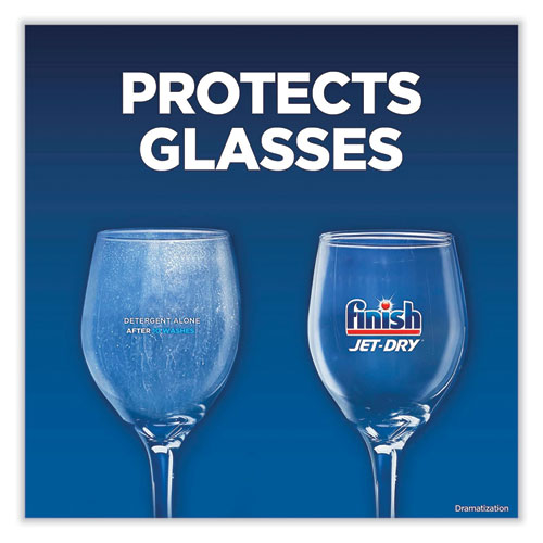 Simply fill your machine’s rinse aid compartment with Finish Jet-Dry 3-in-1 to solve three problems at onceit rinses, dries, and shines what detergent alone can’t! Rinses away leftover food and film. Dries left behind water droplets. Clears spots for a brilliant shine. Easy to use, simply refill the rinse aid compartment every few weeks, not every wash.