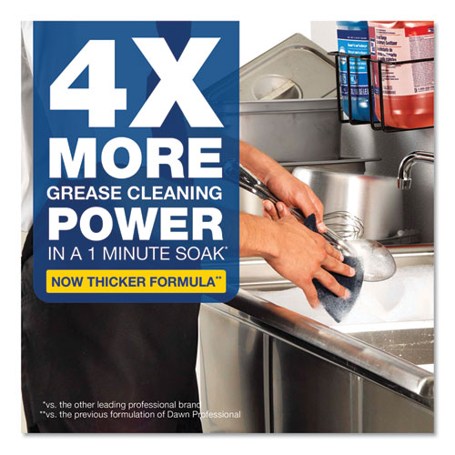 Dawn Professional Manual Pot and Pan Detergent is a highly concentrated liquid dishwashing soap that has the grease-fighting power of Dawn and is specifically formulated for tough jobs at your business. This liquid dish soap is specially formulated to help remove greasy food soils from pots, pans and utensils. Dawn dish detergent can work as an all-purpose cleaner for a variety of task areas, including three-compartment sinks (wash sink), countertops, dining areas, cooler doors, windows (outside and inside), portable equipment, trash receptacles, coffeemakers, drive-thru menu boards, and tile walls.