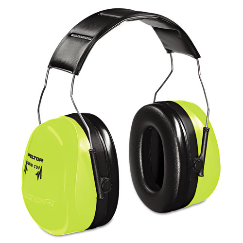 Twin cup design minimizes resonance, thus achieving maximum high and low frequency attenuation. Pivoting earcups for optimum fit. Padded steel headband with four point suspension for extra comfort.