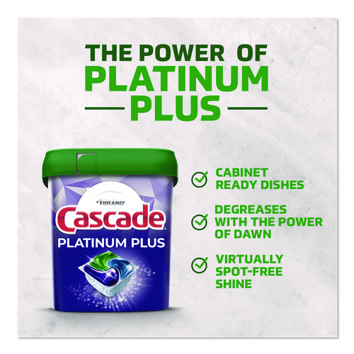 You can skip the pre-rinse, skip the soak, skip the scrub, and dare to dish differently. Just scrape your dishes and load them into your dishwasher with Platinum Plus to get a superior, sparkling clean, saving you time, effort, and energy vs. handwashing. Get virtually spot-free gleaming glassware, dazzling dishes, and pristine pots and pans with Cascade Platinum Plus Dishwashing ActionPacs.