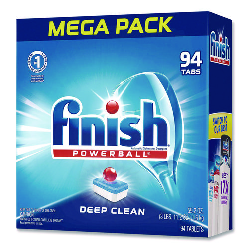 All-In-One dishwasher detergent tablets give you an amazing clean and shine-which means you will never have to re-wash your dishes again. Our Powerball® supercharges the tablet, bursting into action to scrub away the toughest food residues like dried-on food, such as lasagna and oatmeal. Our powerful cleaners remove even the toughest stains, like coffee and tea, and gently scrub your dishes and glasses sparkling clean. All-In-One tablets (individually wrapped and pre-measured) are safe for septic systems.