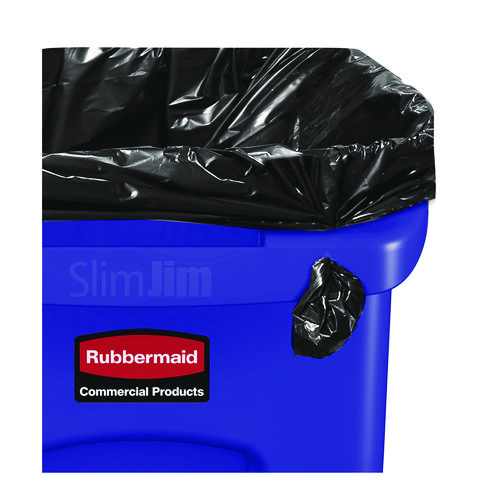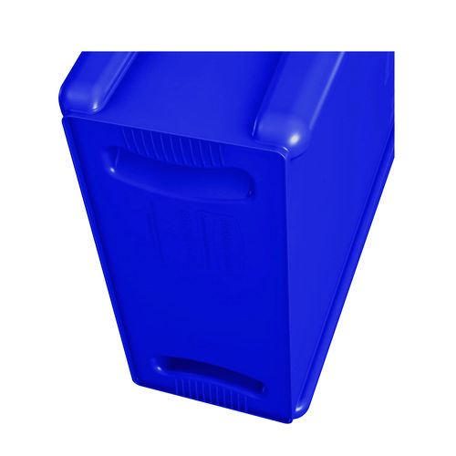 The Rubbermaid Commercial Products Vented Slim Jim Recycling Can Waste Receptacle, 23 Gallon, is crafted to make waste management compliance easier and reduce strain on workers. Constructed of high quality, commercial-grade materials, these trash cans feature four venting channels that make removing garbage bags up to 80% easier than traditional straight wall receptacles. By allowing air to flow into the can, liners can be pulled more easily from the recycling bin which reduces strain on staff and increases efficiency. Four bag cinches around the rib-strengthened reinforced rim create quick, knot-free liner changes. Sturdy handles and molded base grips make transporting and emptying contents more ergonomic while the step design prevents jamming when containers are nested. The Vented Slim Jim waste receptacle recycler is designed for superior durability and maximum efficiency.
