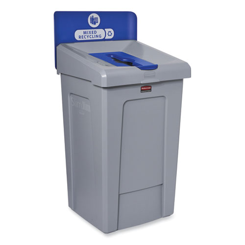 The Rubbermaid Commercial Slim Jim Recycling Station offers an adaptable recycling solution to fit any commercial facility’s recycling needs and it seamlessly connects with the 23G Slim Jim Recycling Station. The station features color-coded lids and billboards, stream-specific openings, and labeling with intuitive icons and verbiage to help patrons and staff sort recyclables with ease. The station connects without the use of hardware or tools for easy assembly; the durable connector snaps into place, securely holding the containers together. The container features bag cinches, eliminating the need to tie knots to secure liners. Additionally, its venting channels make it up to 75% easier to remove full liners.