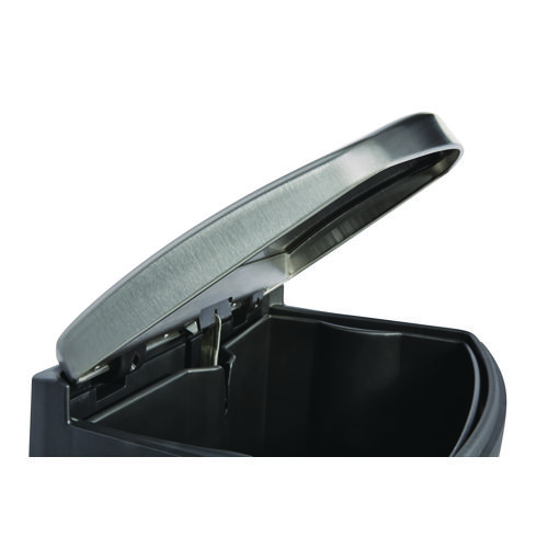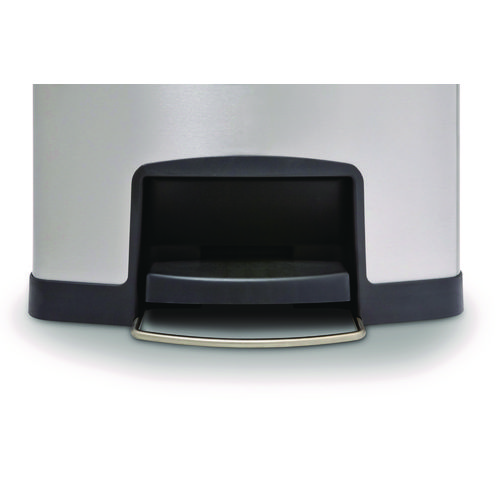 Designed to satisfy the diverse needs of any facility. Maximizes space efficiency with a small footprint and slim profile. Fits in even the tightest spaces. Fingerprint resistant stainless steel is easy to maintain for enhanced aesthetics. Internal hinge design prevents wall damage. Quiet and controlled lid-closure minimizes noise. Liner retainer band and cinch easily and securely holds can liners. Increased foot pedal clearance for easier access and operation.