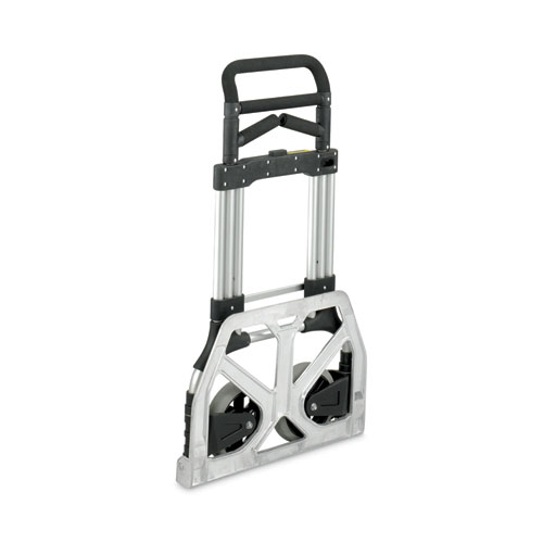 This versatile, collapsible truck will fit neatly into small spaces for compact storage. Lightweight aluminum frame for easy transport, the weight capacity is suitable for most office use. Features include solid rubber tires, a toeplate and telescoping handles that tuck away for storage.