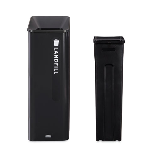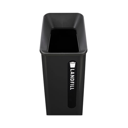 Rubbermaid Commercial Products Sustain Containers are a decorative and adaptable recycling solution made to improve your facility’s sustainability compliance. Modular system allows the container stations to be customized and grow with each recycling program’s needs. Restrictive waste stream openings and colored labels provide easy visual cues for patrons, making recycling easier and improving compliance with growing regulations.
