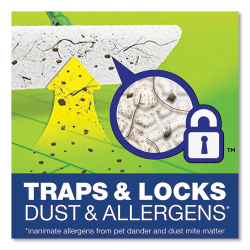 Removes dust, dirt, hair and allergens from finished floors. Use with disposable Swiffer cloths (sold separately). Lightweight swivel head adjusts to get into hard-to-reach places. Use with dry or wet cloths. Mop handle breaks down into four parts for storage and to adjust length.