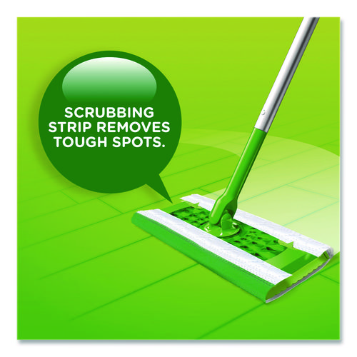 The Swiffer® TRAP + LOCK wet mop textured cloth traps and locks dirt deep inside. The cloth is safe on all finished floors and has a scrubbing strip to remove tough spots. Do not use on unfinished, oiled or waxed wooden boards, non-sealed tiles or carpeted floors because they may be water-sensitive.